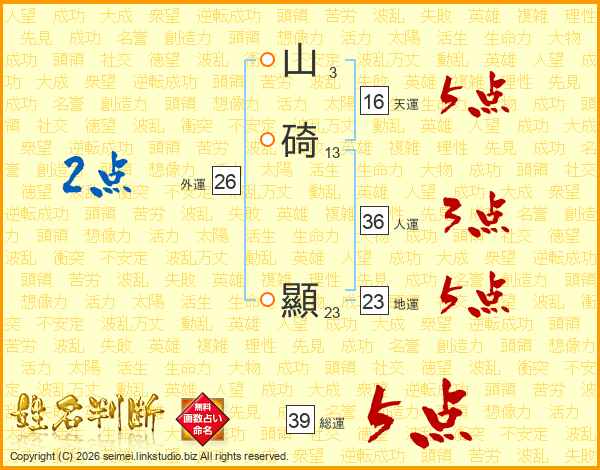 山碕顯さんの総運は39画の5点!