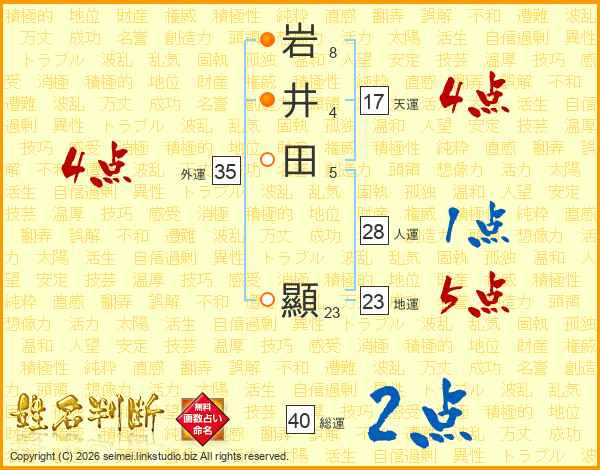 岩井田顯さんの天運は17画の4点!