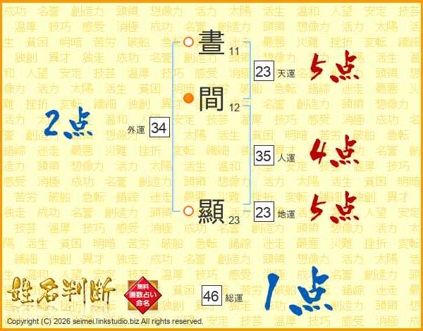 晝間顯さんの外運は34画の2点!