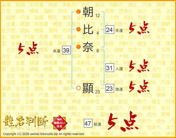 朝比奈顯さんの総運は47画の5点!