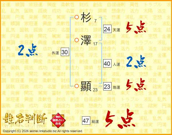 杉澤顯さんの総運は47画の5点!