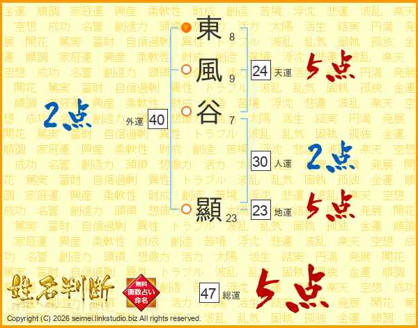 東風谷顯さんの総運は47画の5点!