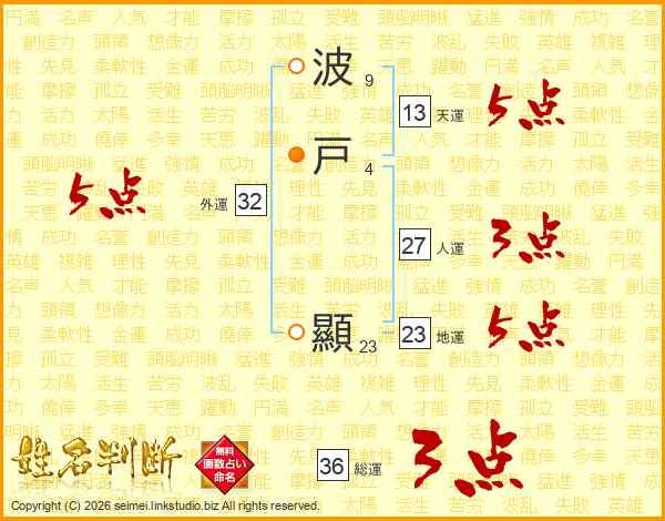 波戸顯さんの外運は32画の5点!