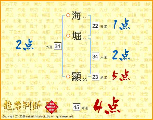 海堀顯さんの総運は45画の4点!
