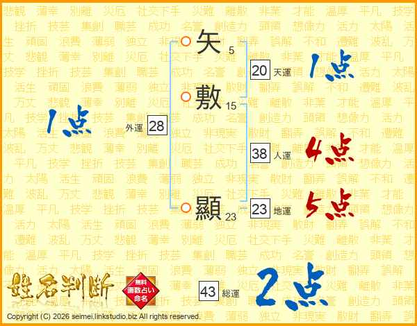 矢敷顯さんの地運は23画の5点!