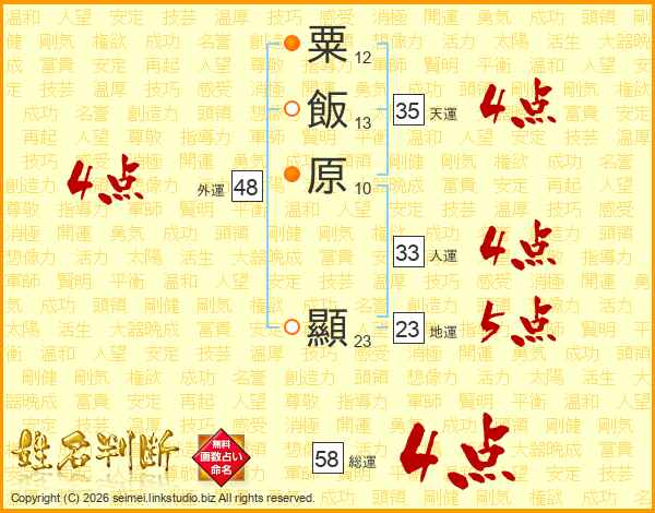 粟(12画)飯(13画)原(10画) 顯(23画)