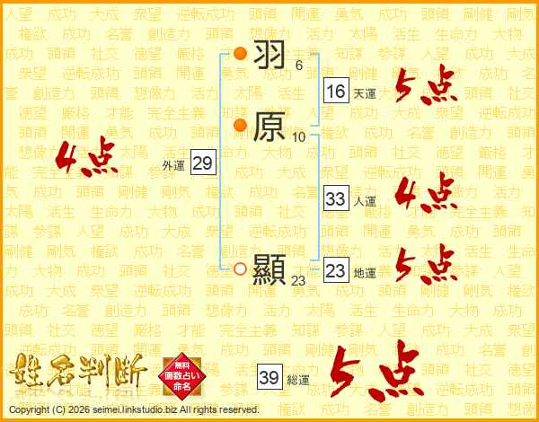 羽原顯さんの総運は39画の5点!