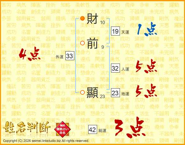 財前顯さんの総運は42画の3点!