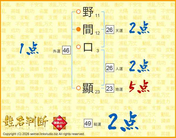 野間口顯さんの総運は49画の2点!