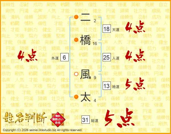 二橋風太さんの人運は25画の4点!