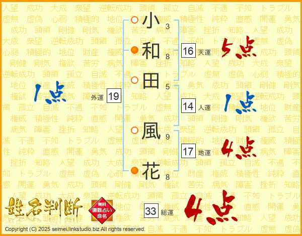 小(3画)和(8画)田(5画) 風(9画)花(8画)