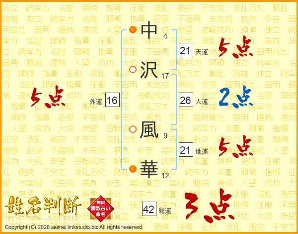 中沢風華さんの天運は21画の5点!