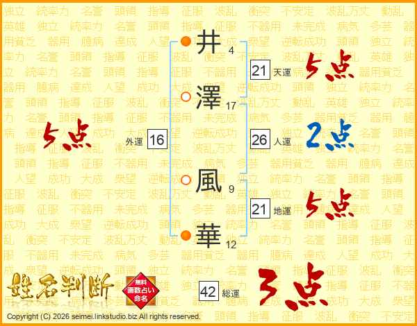 井(4画)澤(17画) 風(9画)華(12画)