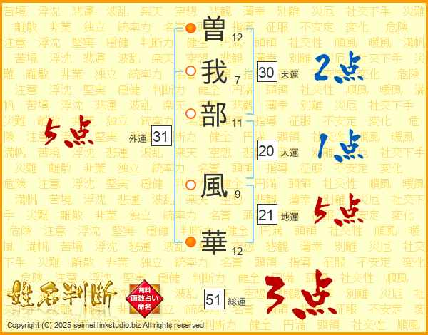 曽(12画)我(7画)部(11画) 風(9画)華(12画)