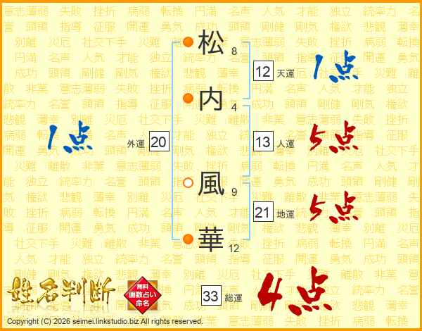 松(8画)内(4画) 風(9画)華(12画)