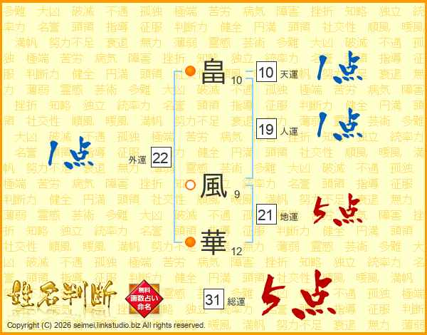 畠風華さんの総運は31画の5点!