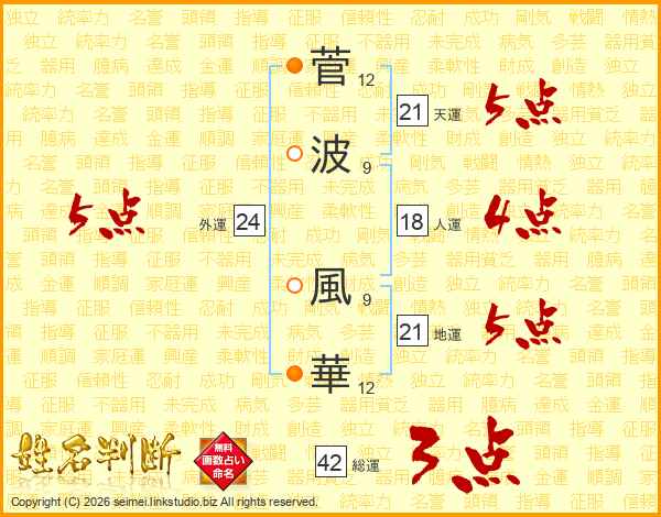 菅(12画)波(9画) 風(9画)華(12画)