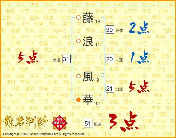 藤浪風華さんの外運は31画の5点!