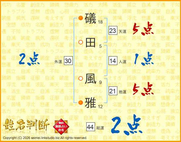 礒田風雅さんの総運は44画の2点!