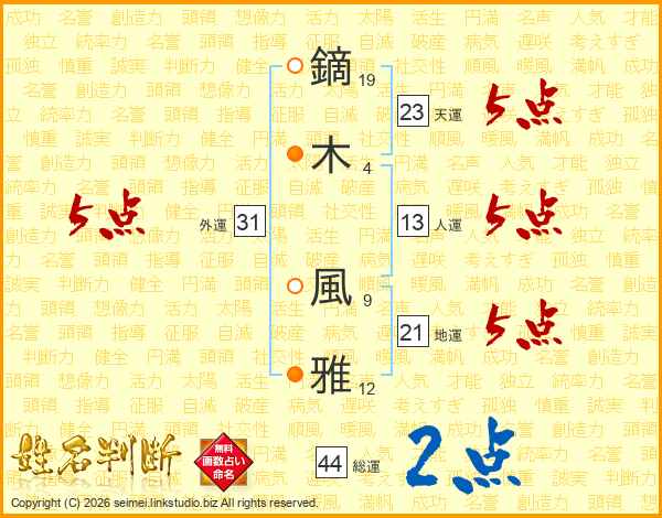 鏑木風雅さんの天運は23画の5点!