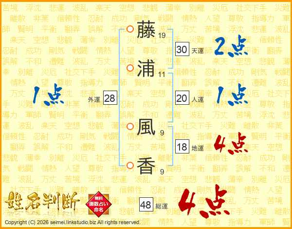 藤浦風香さんの総運は48画の4点!