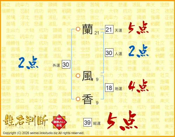 蘭風香さんの総運は39画の5点!