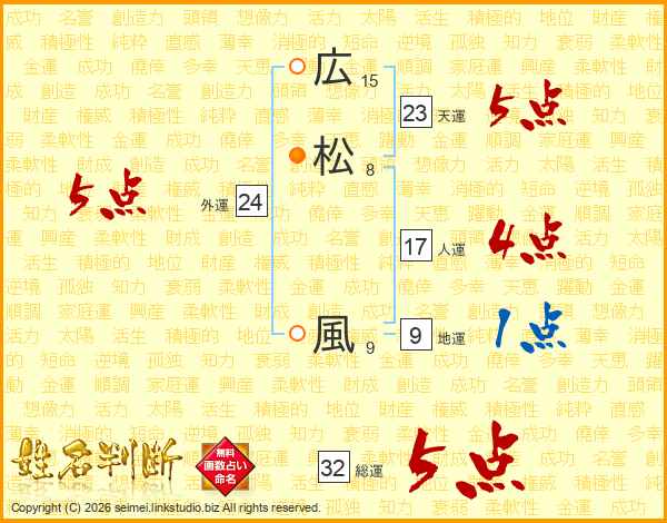 広(15画)松(8画) 風(9画)