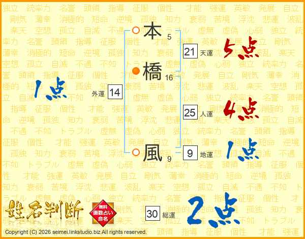 本橋風さんの天運は21画の5点!