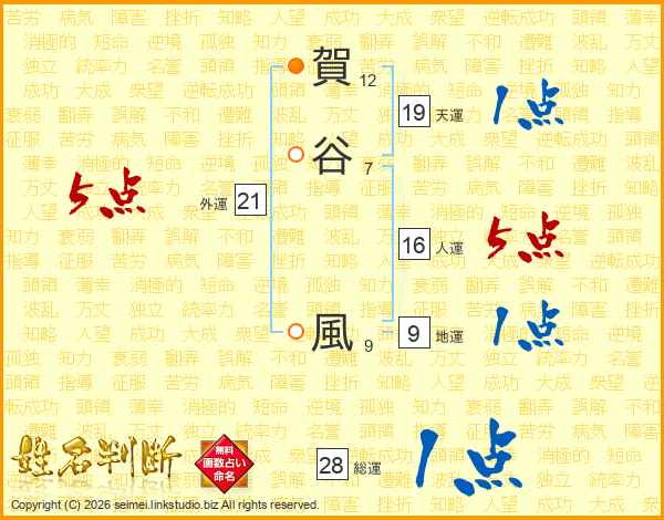 賀(12画)谷(7画) 風(9画)