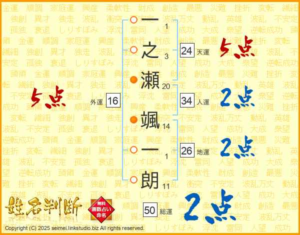 一之瀬颯一朗さんの外運は16画の5点!