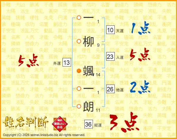一柳颯一朗さんの外運は13画の5点!
