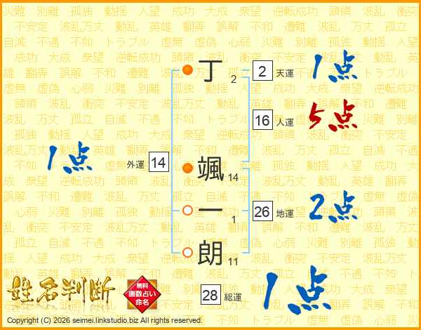 丁颯一朗さんの総運は28画の1点!