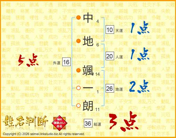 中地颯一朗さんの地運は26画の2点!