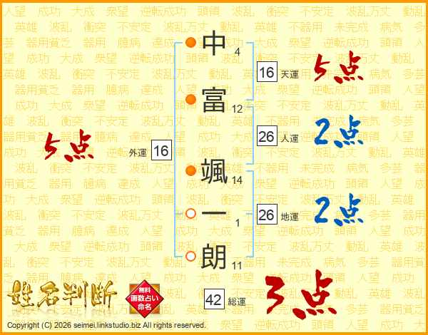 中富颯一朗さんの人運は26画の2点!