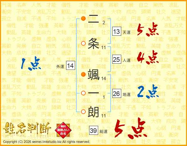 二条颯一朗さんの総運は39画の5点!