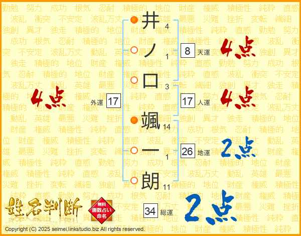 井ノ口颯一朗さんの地運は26画の2点!