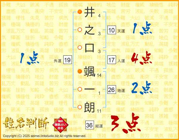 井(4画)之(3画)口(3画) 颯(14画)一(1画)朗(11画)