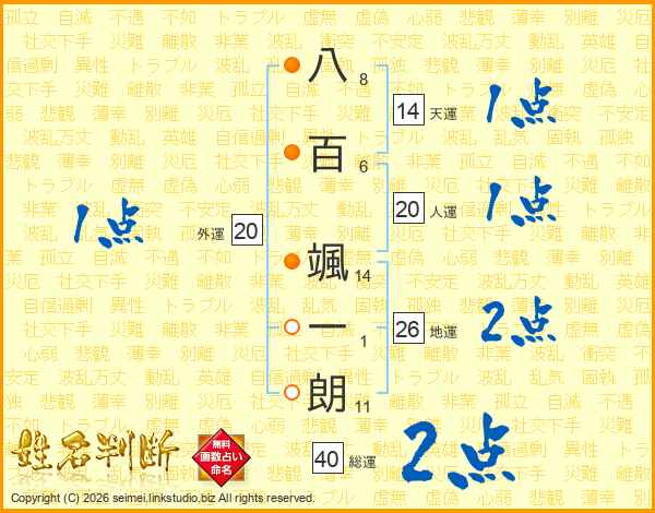 八(8画)百(6画) 颯(14画)一(1画)朗(11画)