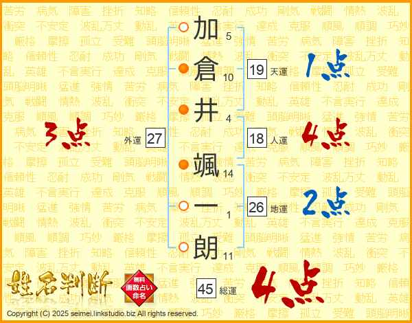 加倉井颯一朗さんの総運は45画の4点!