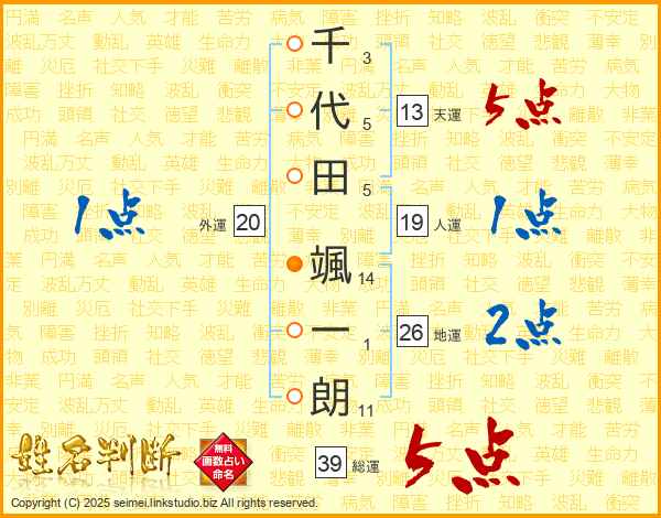 千代田颯一朗さんの総運は39画の5点!