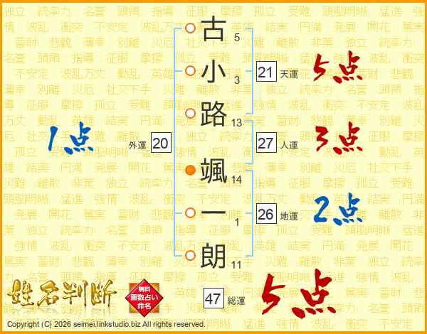 古小路颯一朗さんの総運は47画の5点!