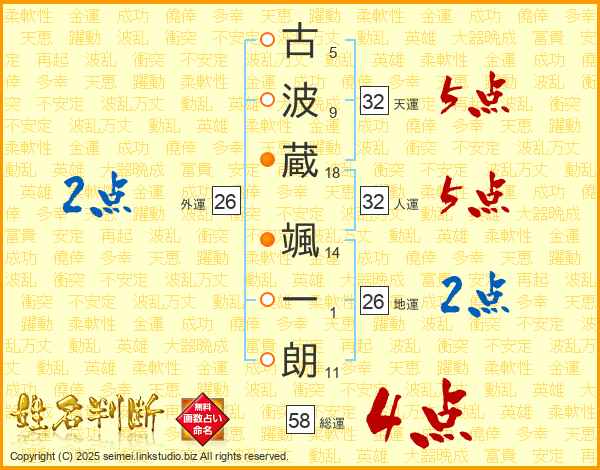 古波蔵颯一朗さんの総運は58画の4点!