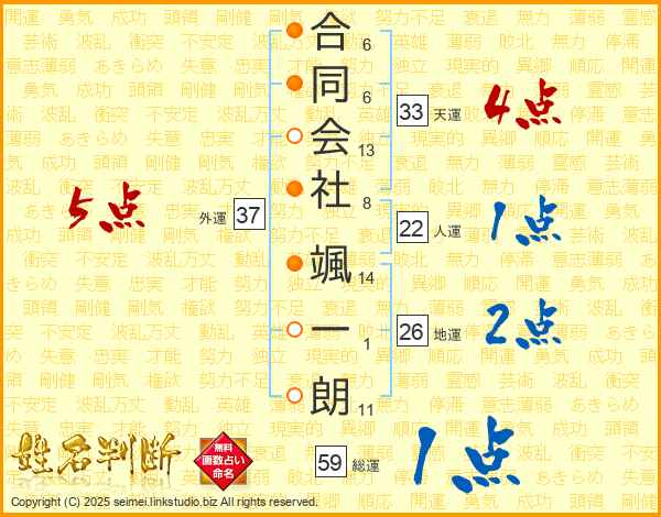 合同会社颯一朗さんの外運は37画の5点!