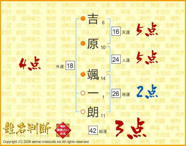 吉原颯一朗さんの地運は26画の2点!