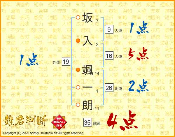 坂入颯一朗さんの地運は26画の2点!