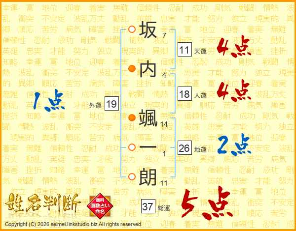 坂内颯一朗さんの地運は26画の2点!