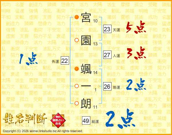 宮園颯一朗さんの総運は49画の2点!