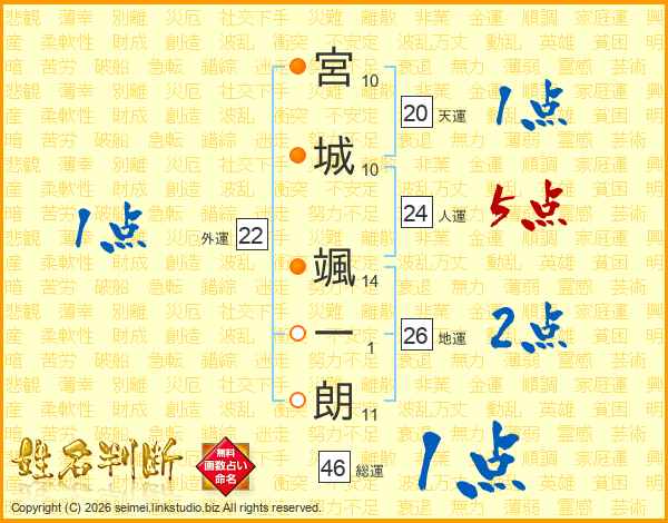 宮城颯一朗さんの総運は46画の1点!