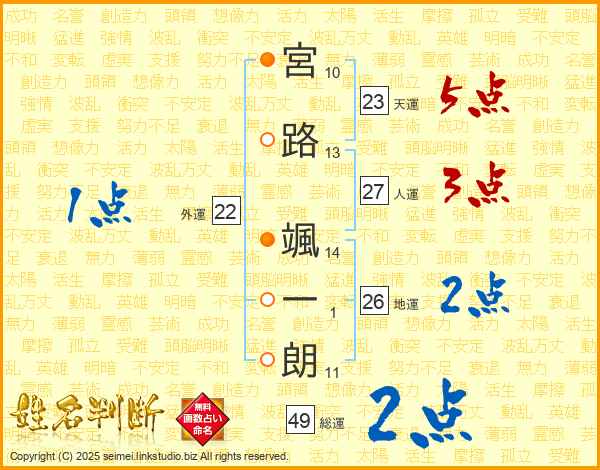 宮路颯一朗さんの総運は49画の2点!