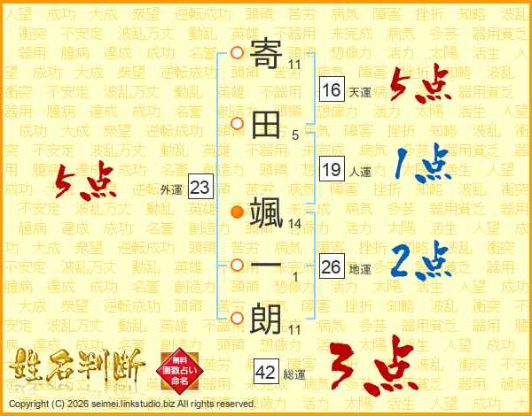 寄田颯一朗さんの地運は26画の2点!